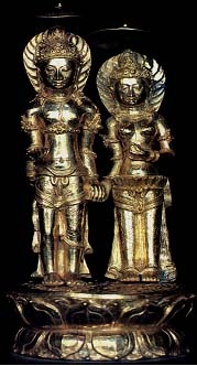 Dari segi bahan, arca Siwa-Parwati yang ditemukan di Gua Seplawan, Purworejo ini paling istimewa, karena dibuat dari bahan logam emas. Arca dan padmasana-nya terbuat dari emas, akan tetapi lapiknya dai perak. Siwa dan Parwati digambarkan berdiri di atas padmasana dengan sikap samabhanga. Keduanya digambarkan dengan dua tangan. Satu tangan masing-masing saling berpegangan, sedangkan satu tangan yang lainnya menampilkan sikap waradamudra. Pakaian masing-masing berupa kain, diikat dengan katisutra dan sampul yang disimpulkan di belakang sehingga membentuk seperti kelopak bunga. Perhiasan yang dikenakan Siwa terdiri atas jatamakuta, kundala, hara, keyura, kangkhana, udarabhanda, dan katisutra. Perhiasan yang sama juga dikenakan Parwati, perbedaannya hanya terletak pada pakian yang dikenakan.